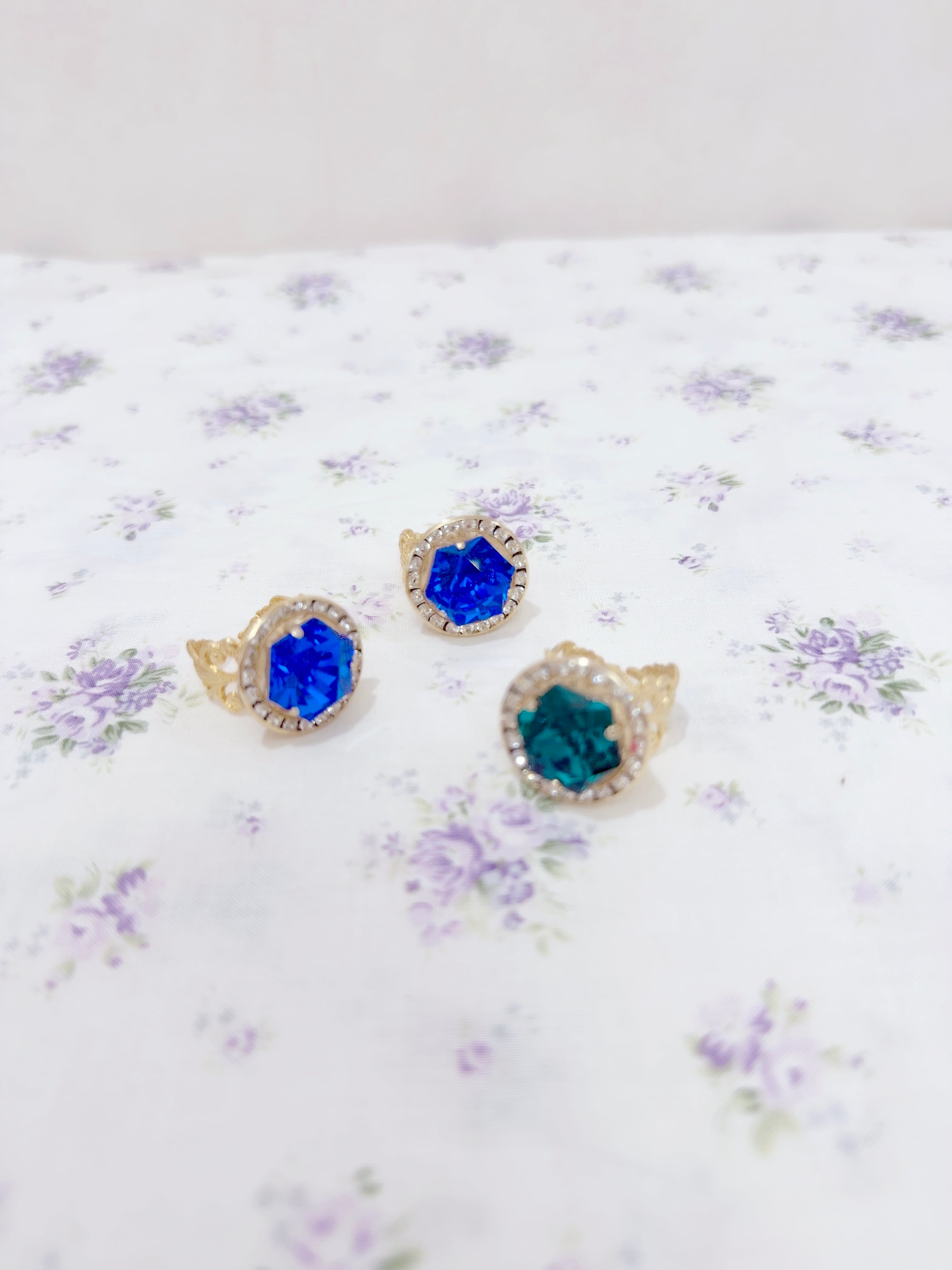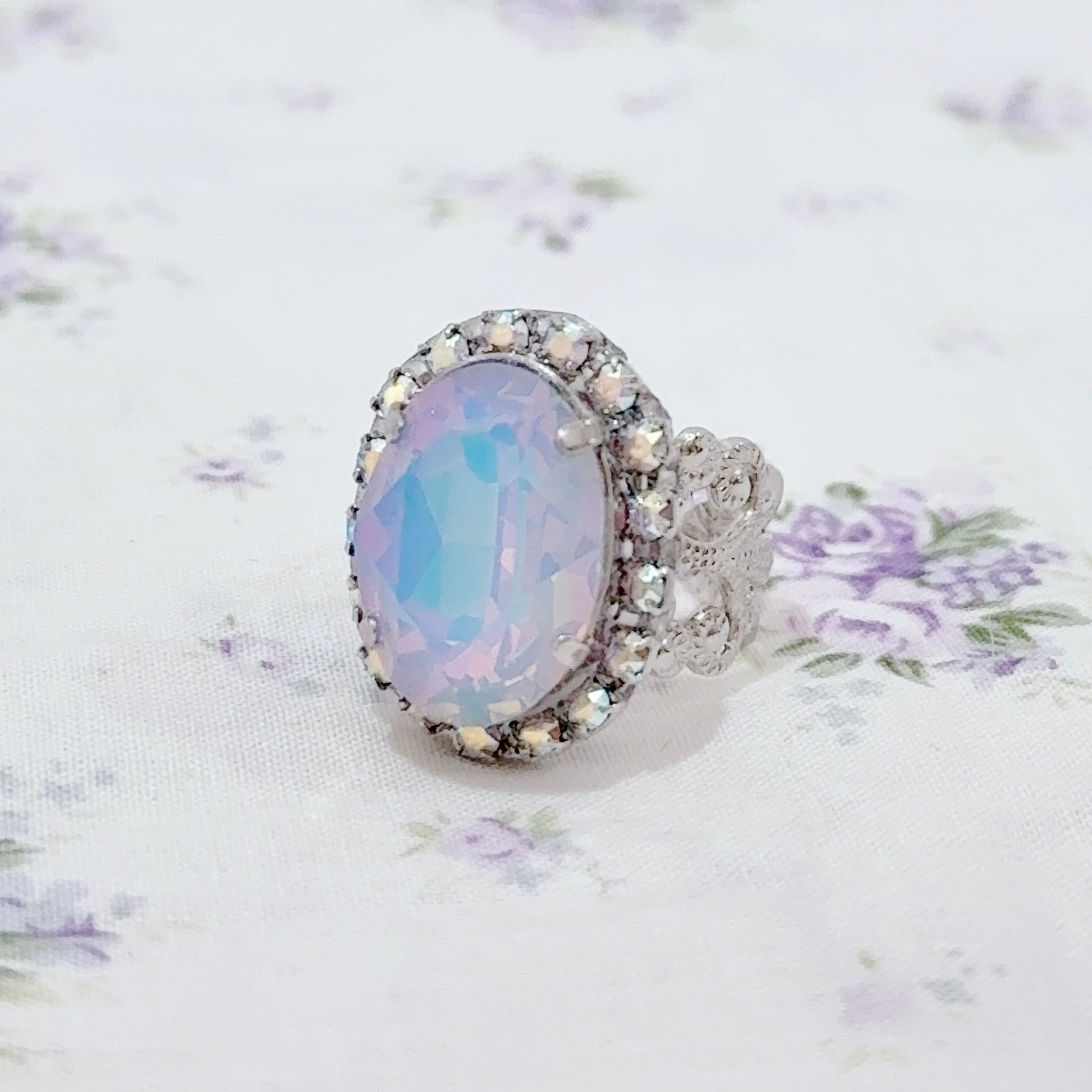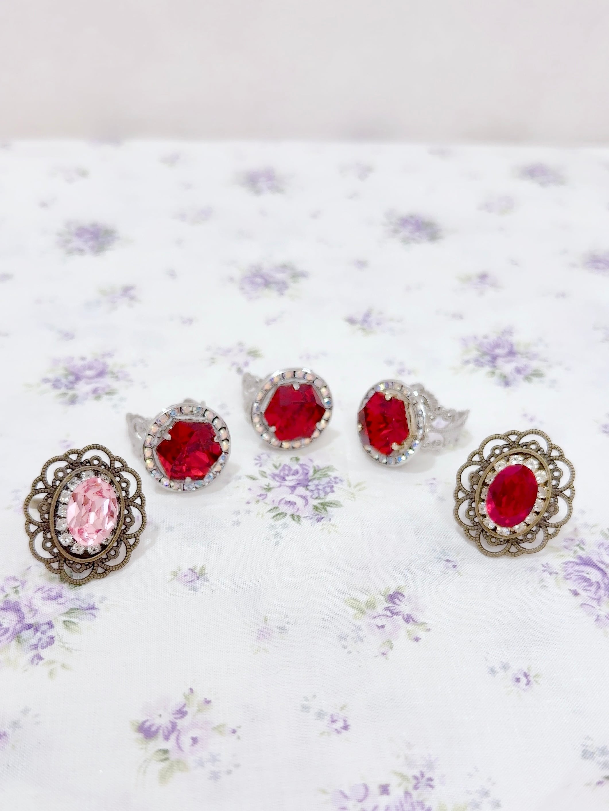 大粒のクリスタルがきらきらと眩い、フリーサイズの指輪です 3000円から4000円でゴスロリマーケットで販売いたします